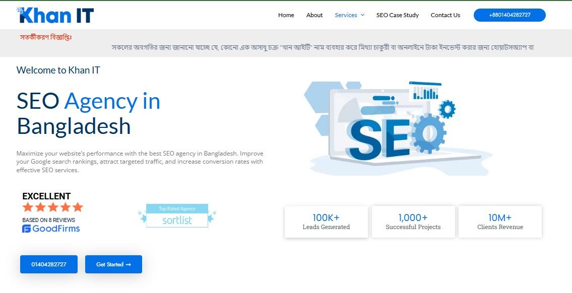 Khan IT is the most promising SEO agency in Bangladesh, offering 360° digital marketing solutions to businesses worldwide. We take pride in bridging the gap between entrepreneurs and their customers. From enhancing visibility to ensuring the highest ROI, our services are tailored to meet your business's specific needs. Khan IT’s reputation as the top digital marketing company in Bangladesh is built on our expertise, professionalism, and commitment to results. Let us elevate your brand and help you dominate the online space.
