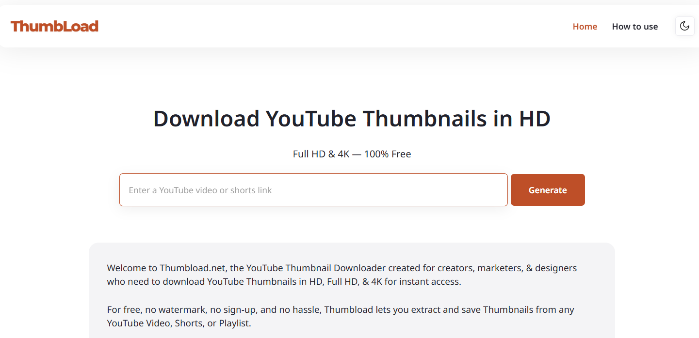 Thumbload is a free online YouTube Thumbnail Downloader and Thumbnail Grabber that lets users download YouTube Video Thumbnails in High Quality HD, Full HD & 4K. Whether it’s for a competitive design analysis, YouTube template creation, or just to save a thumbnail for inspiration, Thumbload provides a convenient and dependable service.