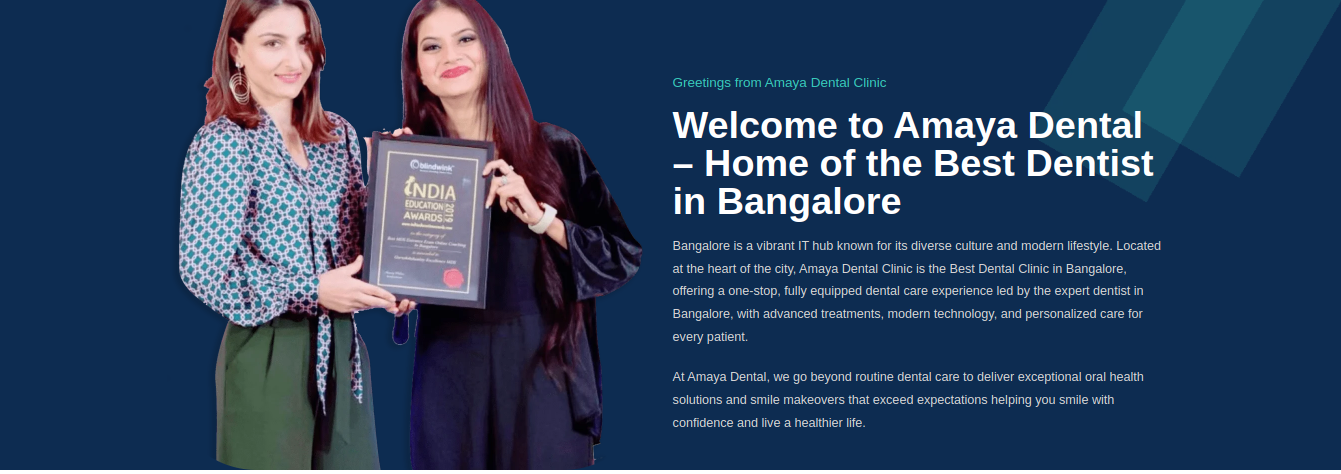Book Your Dental Appointment Today - https://amayadental.in/Amaya Dental has earned its reputation as the Best Dental Clinic in Bangalore by delivering consistent and excellent dental care. The clinic combines expert dentists with advanced technology for superior outcomes. Services include general dentistry, cosmetic treatments, and specialized care. Each patient is treated with personalized attention and care. The clinic follows international hygiene standards. Amaya Dental remains a preferred choice for complete dental solutions. Book Your Dental Appointment Today - https://amayadental.in/