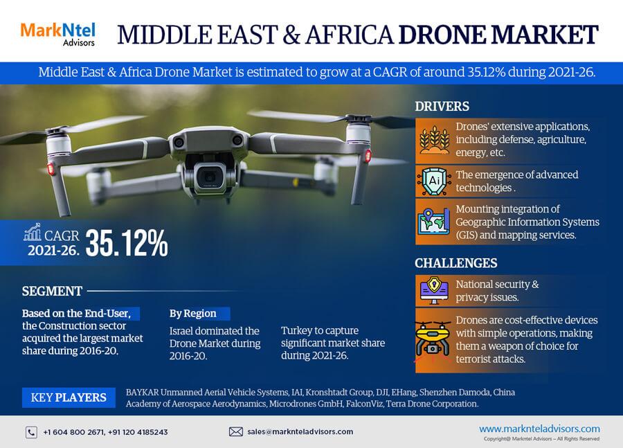 MarkNtel Advisors, a leading market research and consulting firm, has announced the release of its latest study titled Middle East & Africa Drone Market Research Report: Forecast (2021-2026). This report provides a detailed assessment of the Middle East & Africa Drone Market, covering its evolving dynamics, emerging trends, key growth drivers, major challenges, and competitive landscape.