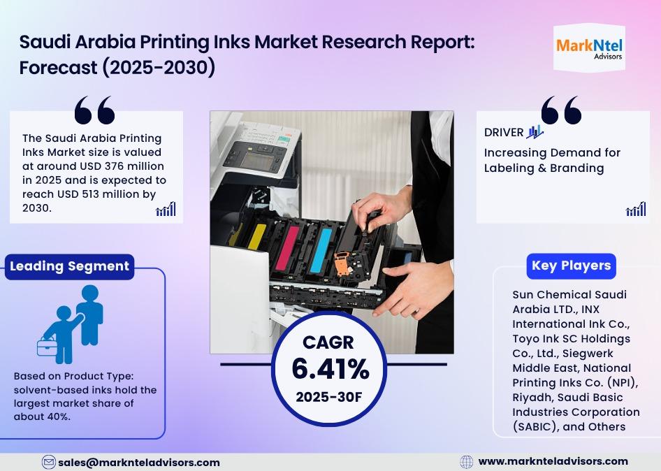 MarkNtel Advisors Releases Comprehensive Study on the Saudi Arabia Printing Inks Market, Forecasting Strong Growth from 2025-2030