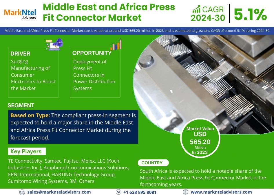 MarkNtel Advisors, a leading market research and consulting firm, has announced the release of its latest study titled Middle East and Africa Press Fit Connector Market Research Report: Forecast (2024-2030). This report provides a detailed assessment of the Middle East and Africa Press Fit Connector Market, covering its evolving dynamics, emerging trends, key growth drivers, major challenges, and competitive landscape.