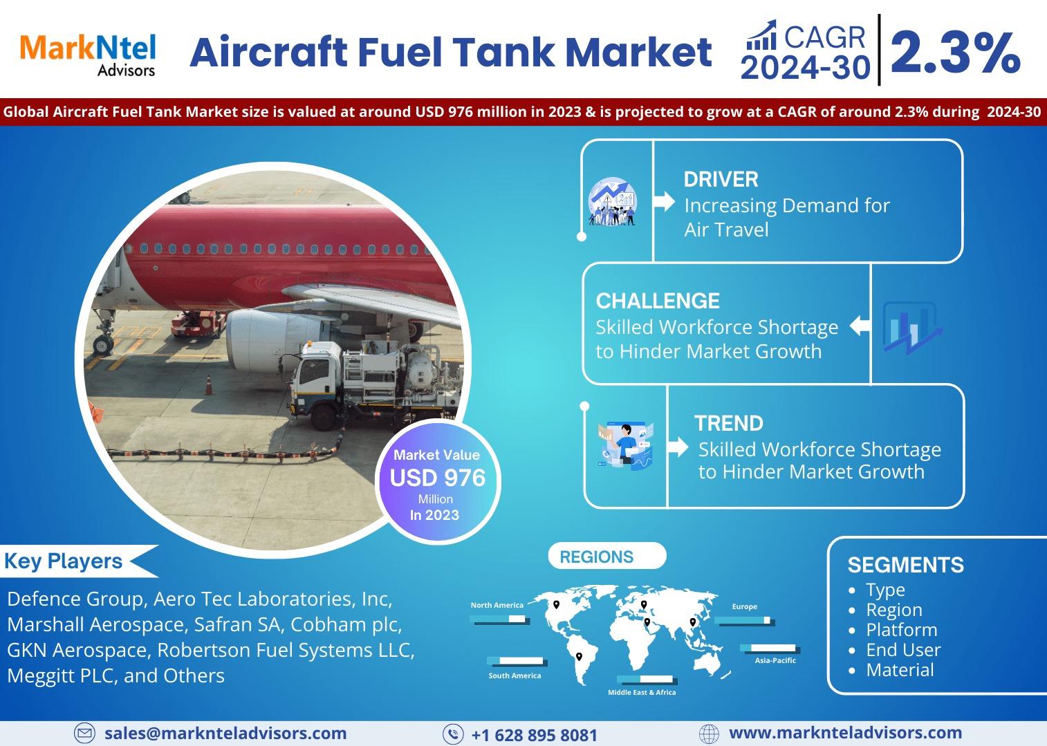 MarkNtel Advisors, a leading market research and consulting firm, has announced the release of its latest study titled Aircraft Fuel Tank Market Research Report: Forecast (2024–2030). This report provides a detailed assessment of the Aircraft Fuel Tank, covering its evolving dynamics, emerging trends, key growth drivers, major challenges, and competitive landscape.