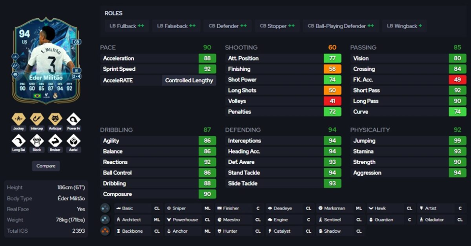 Les meilleures options pour cette évolution incluent des défenseurs centraux possédant une note maximale de 91, une vitesse limitée à 90, un physique également plafonné à 90, et un maximum de trois styles de jeu+. La progression peut augmenter la note globale jusqu’à 94, avec des boosts significatifs en vitesse (+8), physique (+16), défense (+16), et dribble (+6), entre autres.