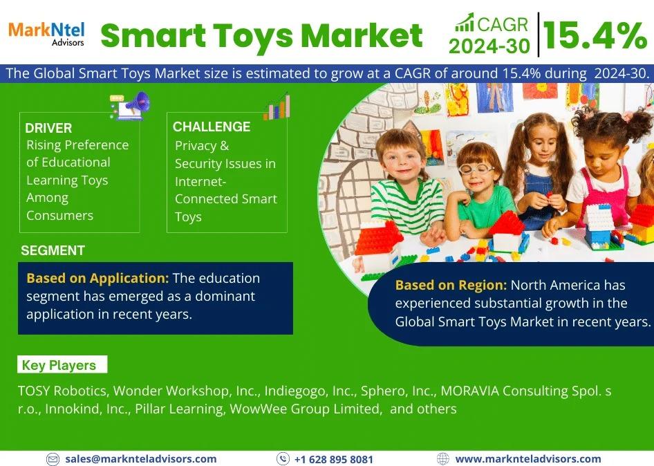 MarkNtel Advisors, a leading market research and consulting firm, has announced the release of its latest study titled Smart Toys Market Research Report: Forecast (2024–2030). This report provides a detailed assessment of the Smart Toys, covering its evolving dynamics, emerging trends, key growth drivers, major challenges, and competitive landscape.