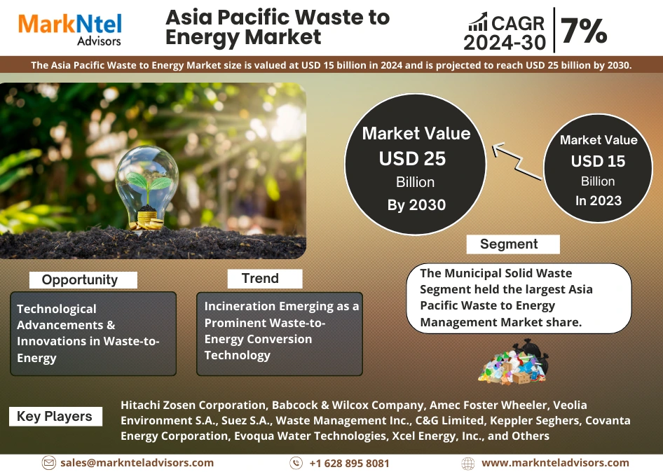 MarkNtel Advisors, a leading market research and consulting firm, has announced the release of its latest study titled “Asia Pacific Waste to Energy Market Analysis, 2024–2030.”