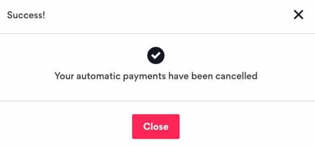 The platform will show you a final confirmation display that summarizes your cancellation request.