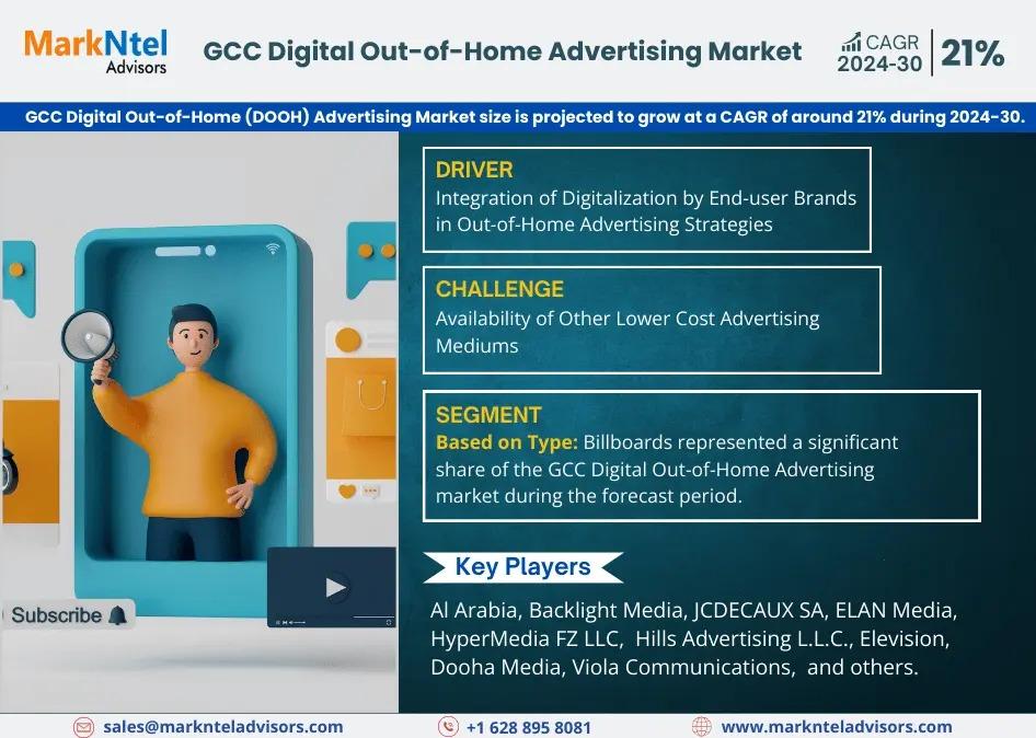 MarkNtel Advisors, a leading market research and consulting firm, has announced the release of its latest study titled GCC Digital Out-of-Home (DOOH) Advertising Market Research Report: Forecast (2024-2030). This report provides a detailed assessment of the GCC Digital Out-of-Home (DOOH) Advertising Market, covering its evolving dynamics, emerging trends, key growth drivers, major challenges, and competitive landscape.