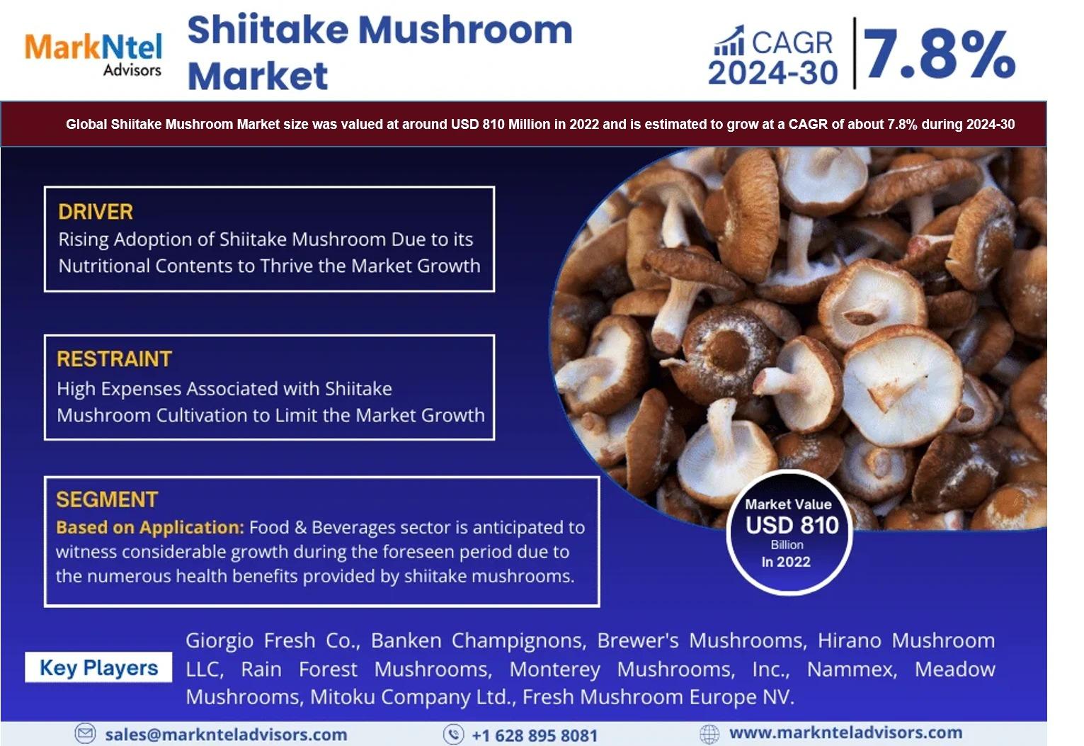 MarkNtel Advisors, a leading market research and consulting firm, has announced the release of its latest study titled Shiitake Mushroom Market Research Report: Forecast (2024–2030). This report provides a detailed assessment of the Shiitake Mushroom, covering its evolving dynamics, emerging trends, key growth drivers, major challenges, and competitive landscape.