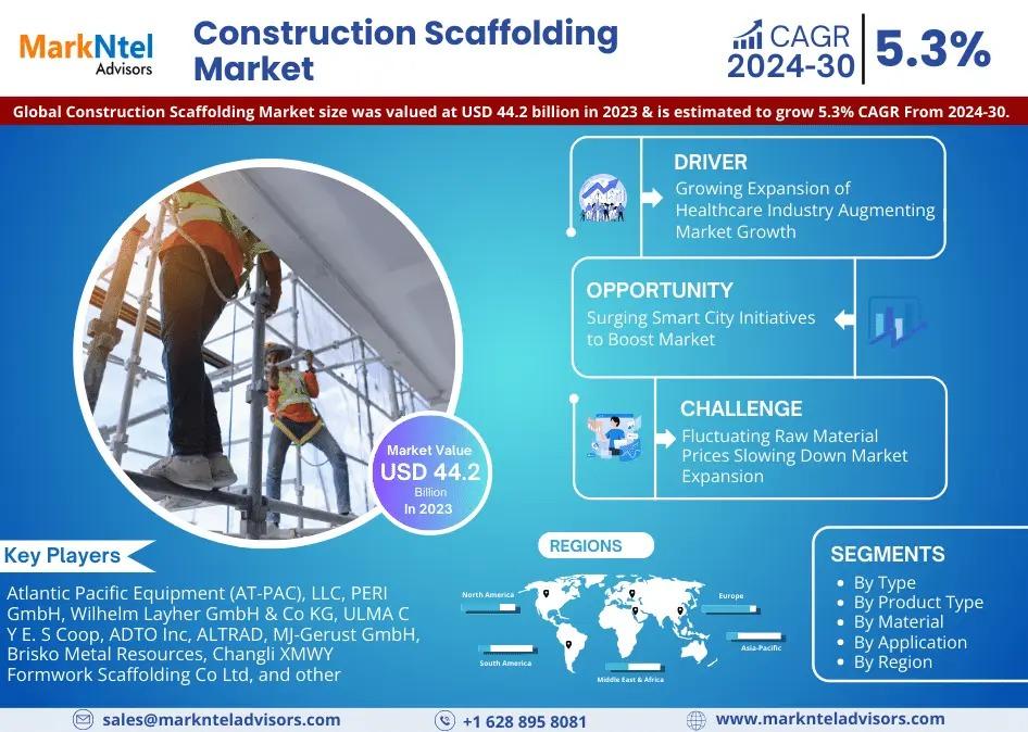 MarkNtel Advisors, a leading market research and consulting firm, has announced the release of its latest study titled Construction Scaffolding Market Research Report: Forecast (2024–2030). This report provides a detailed assessment of the Construction Scaffolding, covering its evolving dynamics, emerging trends, key growth drivers, major challenges, and competitive landscape.