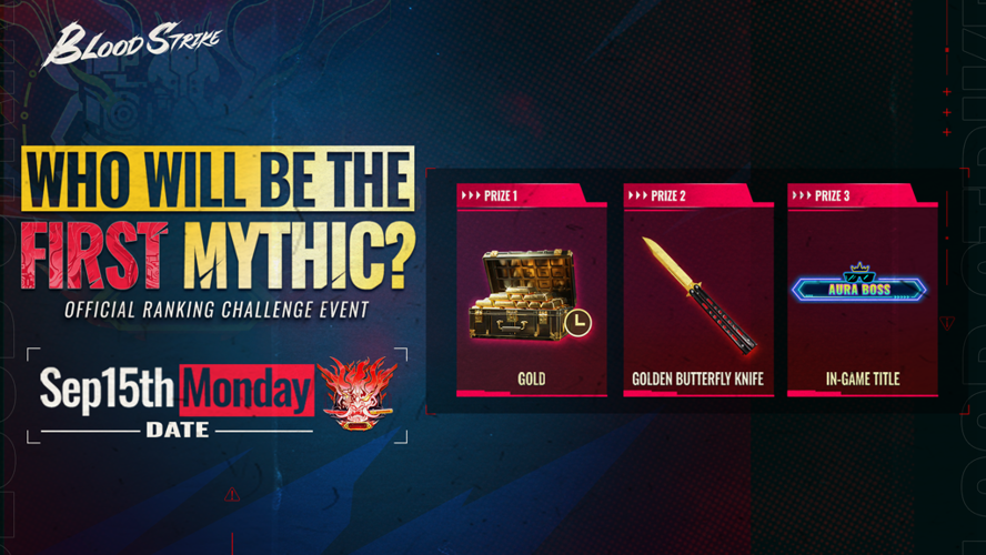 The first player worldwide to hit Mythic post-reset will earn a hefty reward: 19,999 gold, an exclusive “Aura Boss” title, and the coveted Golden Butterfly Knife melee skin.