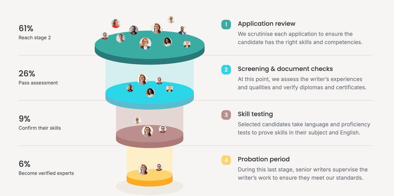 Quality academic support doesn’t start when a student places an order. It starts long before that — with a careful, multi-stage writer selection process. Application review, screening, verification, testing, and a monitored probation period work together to build a team of real experts. When a service invests in this kind of process, students get writing help they can trust.