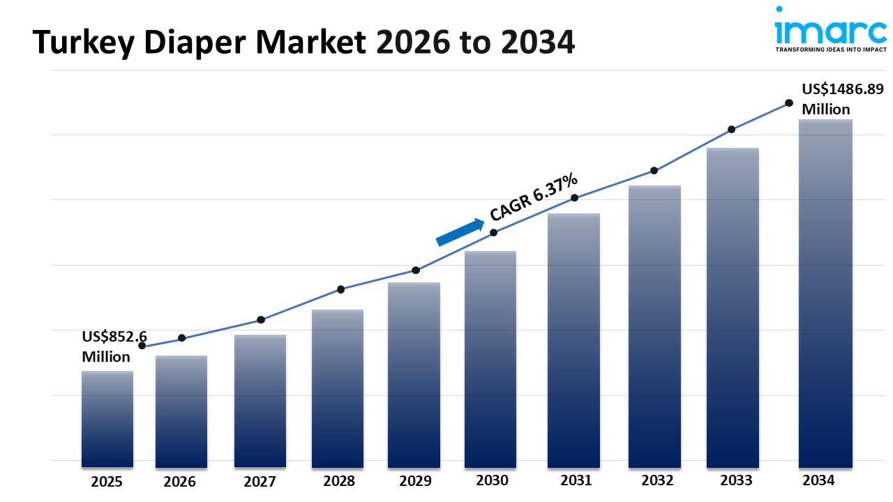 - The Turkey diaper market size was valued at USD 852.6 Million in 2025 and is forecast to reach USD 1,486.89 Million by 2034 with a CAGR of 6.37% during 2026-2034.