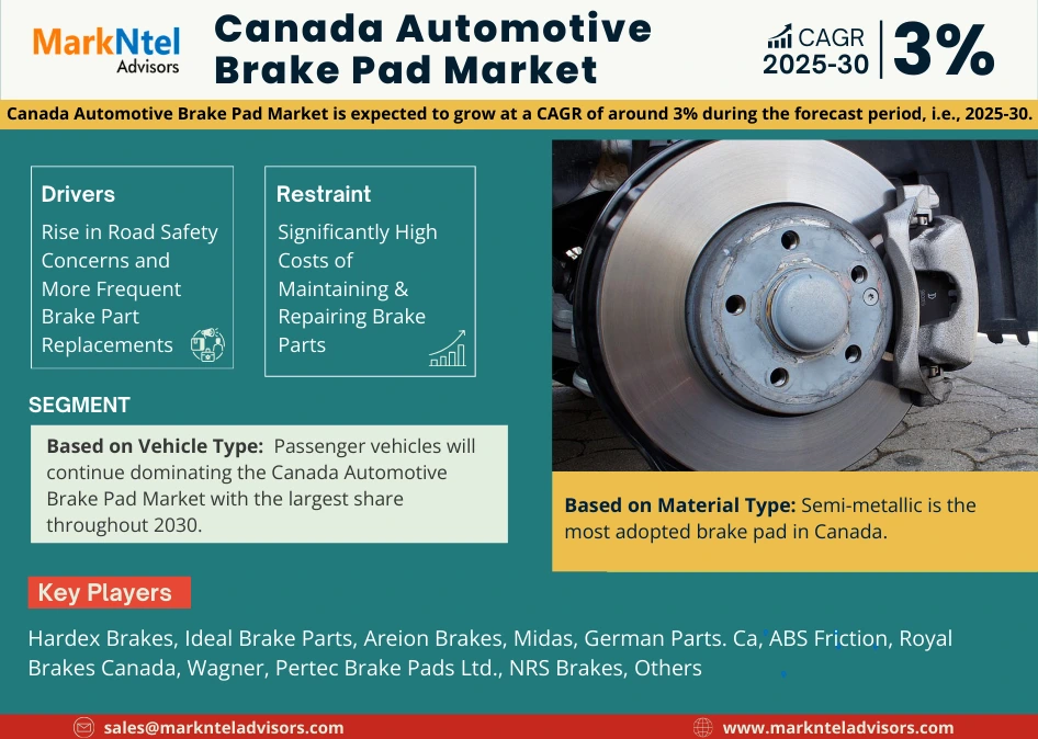 MarkNtel Advisors, a leading market research and consulting firm, has announced the release of its latest study titled “Canada Automotive Brake Pad Market Analysis, 2025-2030.”