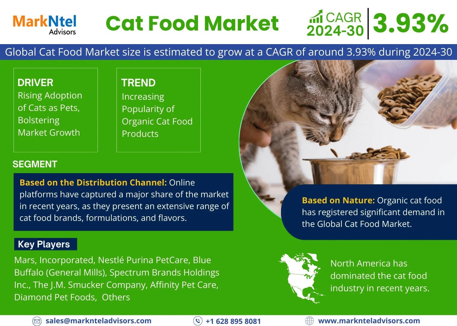 MarkNtel Advisors, a leading market research and consulting firm, has announced the release of its latest study titled Cat Food Market Research Report: Forecast (2024–2030). This report provides a detailed assessment of the Cat Food, covering its evolving dynamics, emerging trends, key growth drivers, major challenges, and competitive landscape.