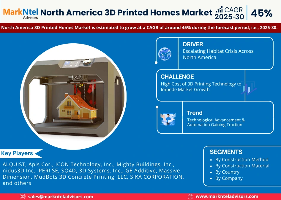 MarkNtel Advisors Releases Comprehensive Study on the North America 3D Printed Homes Market, Forecasting Strong Growth from 2025-2030