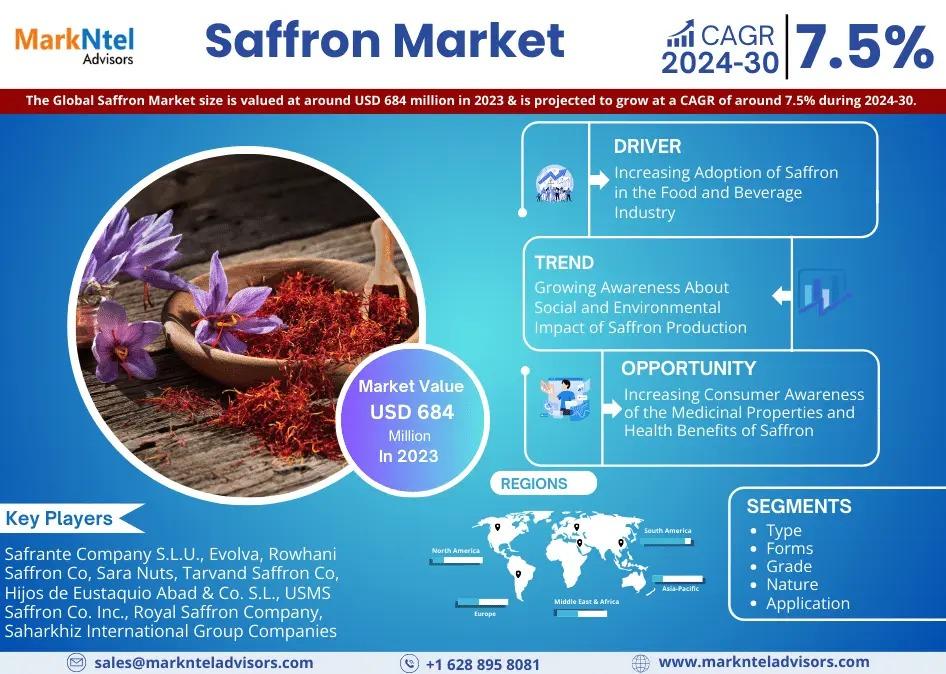 MarkNtel Advisors, a leading market research and consulting firm, has announced the release of its latest study titled Saffron Market Research Report: Forecast (2024–2030). This report provides a detailed assessment of the Saffron, covering its evolving dynamics, emerging trends, key growth drivers, major challenges, and competitive landscape.