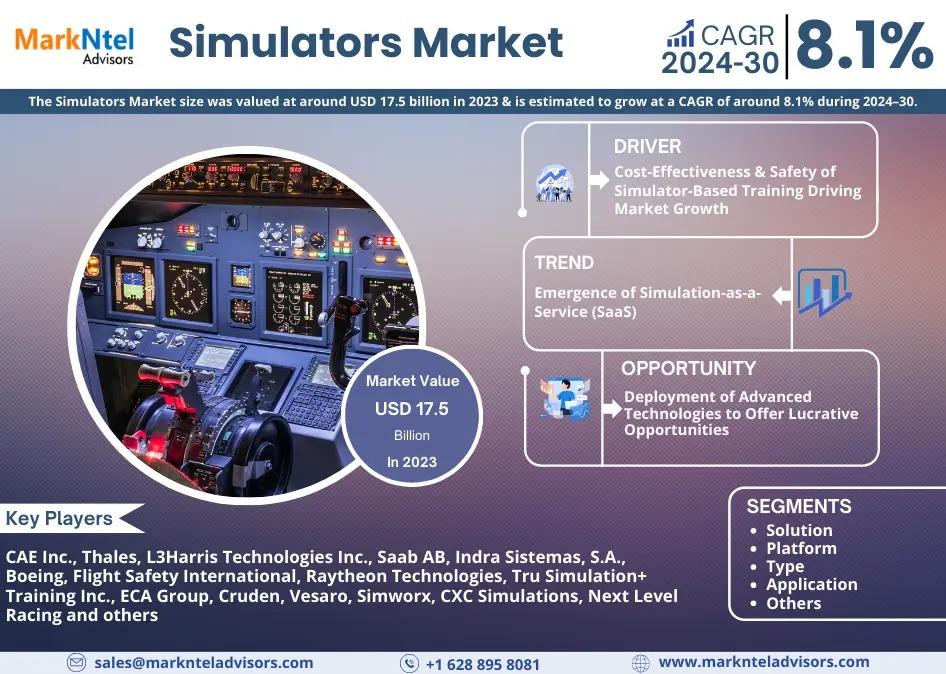 MarkNtel Advisors, a leading market research and consulting firm, has announced the release of its latest study titled Simulators Market Research Report: Forecast (2024–2030). This report provides a detailed assessment of the Simulators, covering its evolving dynamics, emerging trends, key growth drivers, major challenges, and competitive landscape.