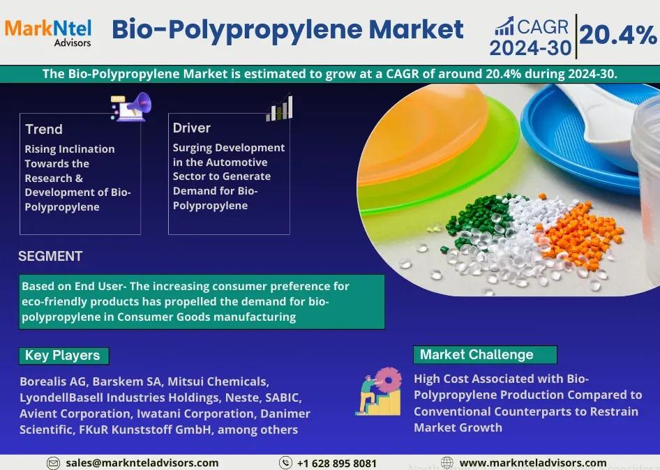 MarkNtel Advisors, a leading market research and consulting firm, has announced the release of its latest study titled Bio-Polypropylene Market Research Report: Forecast (2024–2030). This report provides a detailed assessment of the Bio-Polypropylene, covering its evolving dynamics, emerging trends, key growth drivers, major challenges, and competitive landscape.