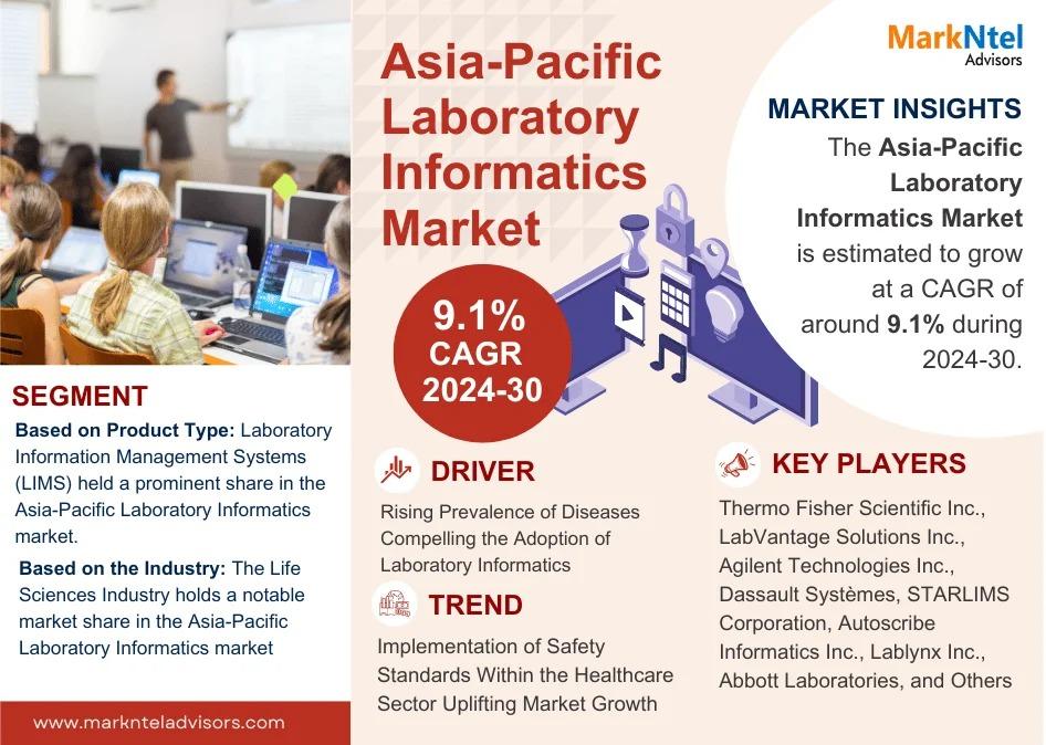 MarkNtel Advisors, a leading market research and consulting firm, has announced the release of its latest study titled Asia-Pacific Laboratory Informatics Market Research Report: Forecast (2024–2030). This report provides a detailed assessment of the Asia-Pacific Laboratory Informatics, covering its evolving dynamics, emerging trends, key growth drivers, major challenges, and competitive landscape.