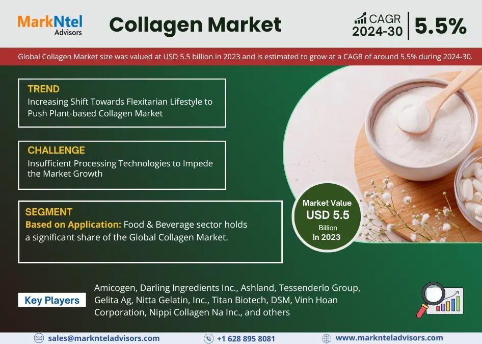 MarkNtel Advisors, a leading market research and consulting firm, has announced the release of its latest study titled Collagen Market Research Report: Forecast (2024–2030). This report provides a detailed assessment of the Collagen, covering its evolving dynamics, emerging trends, key growth drivers, major challenges, and competitive landscape.