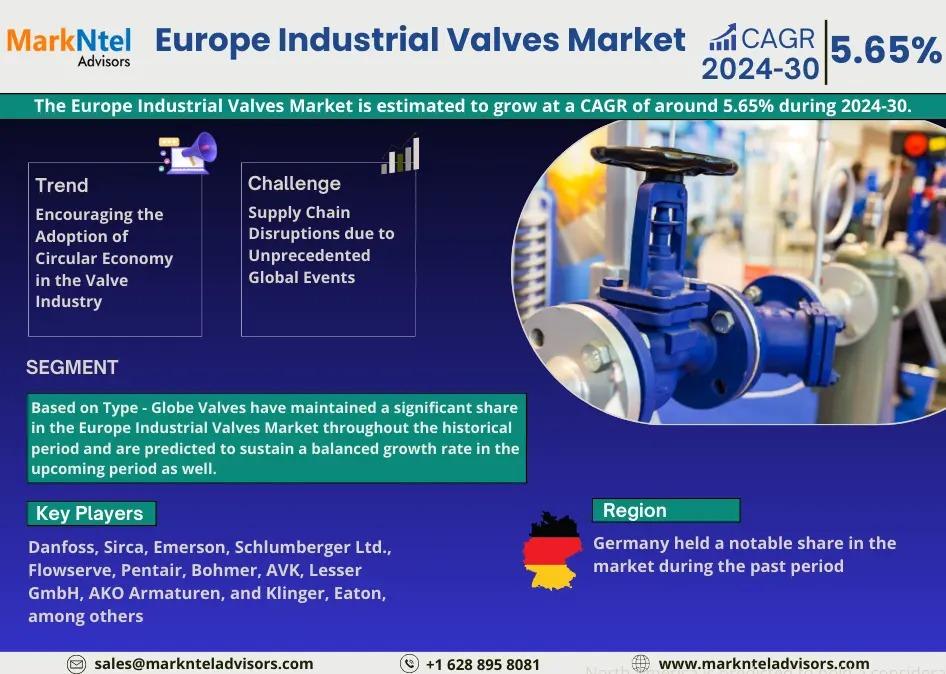 MarkNtel Advisors, a leading market research and consulting firm, has announced the release of its latest study titled Europe Industrial Valves Market Research Report: Forecast (2024–2030). This report provides a detailed assessment of the Europe Industrial Valves, covering its evolving dynamics, emerging trends, key growth drivers, major challenges, and competitive landscape.