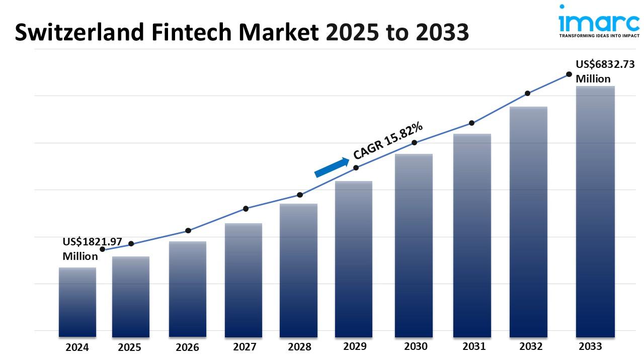 The Switzerland fintech market size reached USD 1,821.97 Million in 2024 and is projected to reach USD 6,832.73 Million by 2033. It is expected to grow at a CAGR of 15.82% during the forecast period of 2025-2033. Market growth is propelled by increasing digital adoption, innovation in financial services, and supportive regulatory frameworks with key trends including AI, blockchain integration, and mobile banking solutions reshaping consumer and institutional finance interactions.