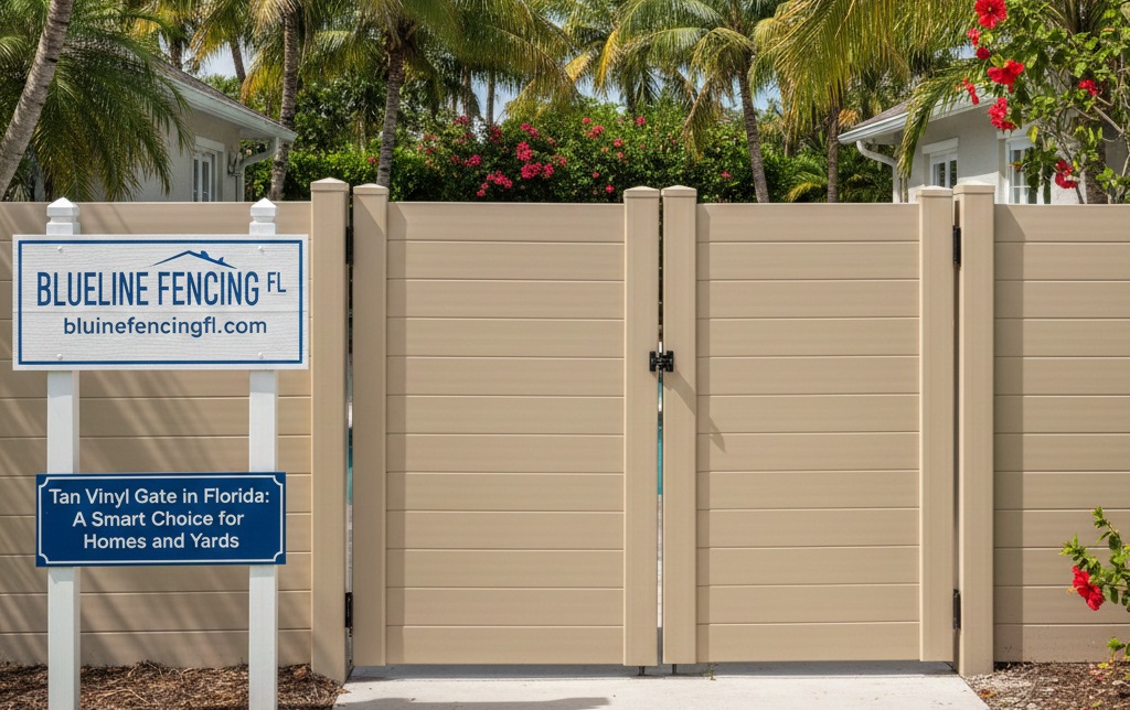 A tan vinyl gate is a smart upgrade for Florida homes. It handles weather, needs little care, and looks great.