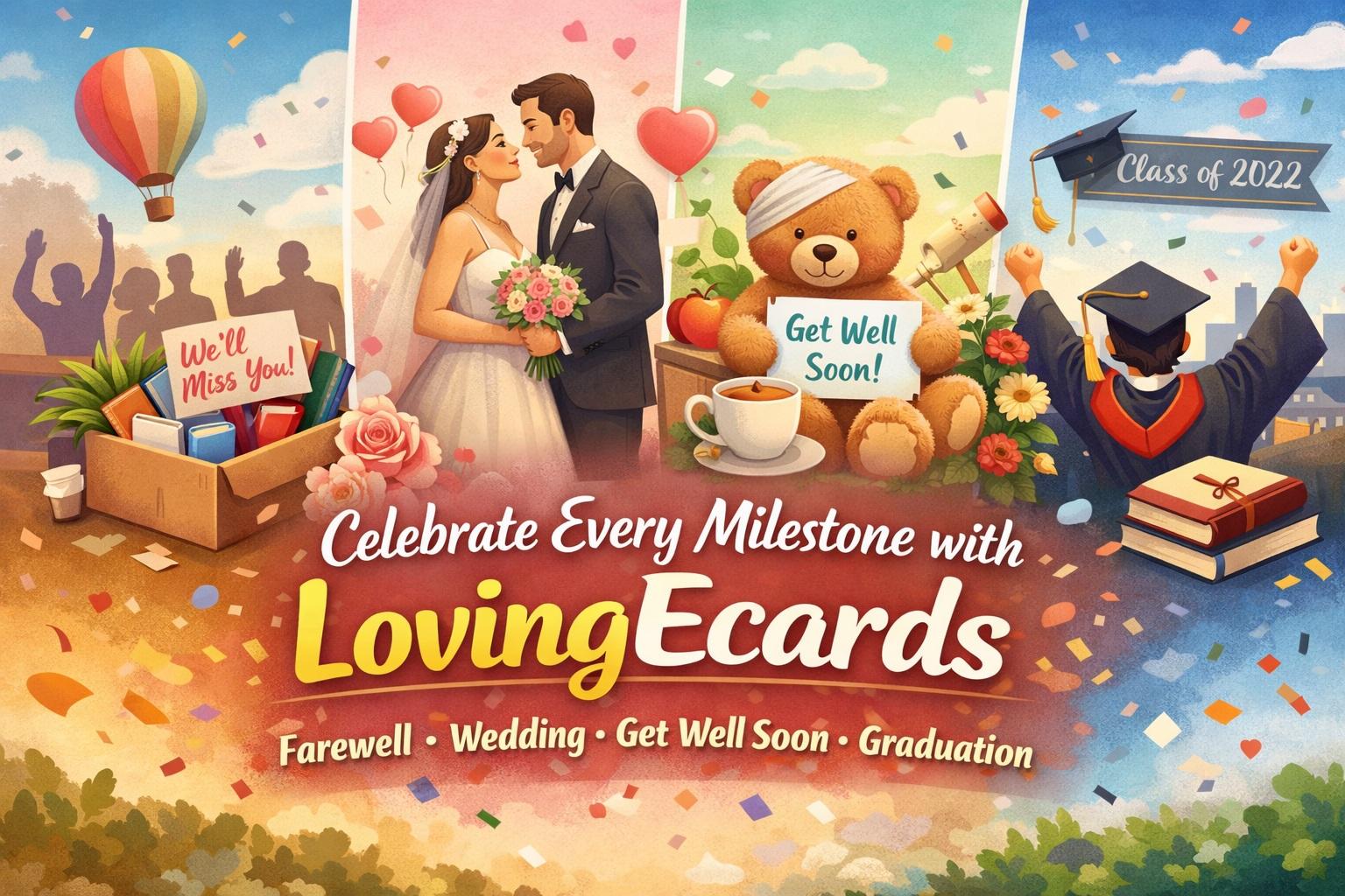 With a wide variety of categories to choose from, LovingEcards helps you celebrate milestones and support loved ones with meaningful messages that resonate. Below, we’ll explore four popular categories in depth: farewell cards, wedding cards, get-well cards, and graduation cards.