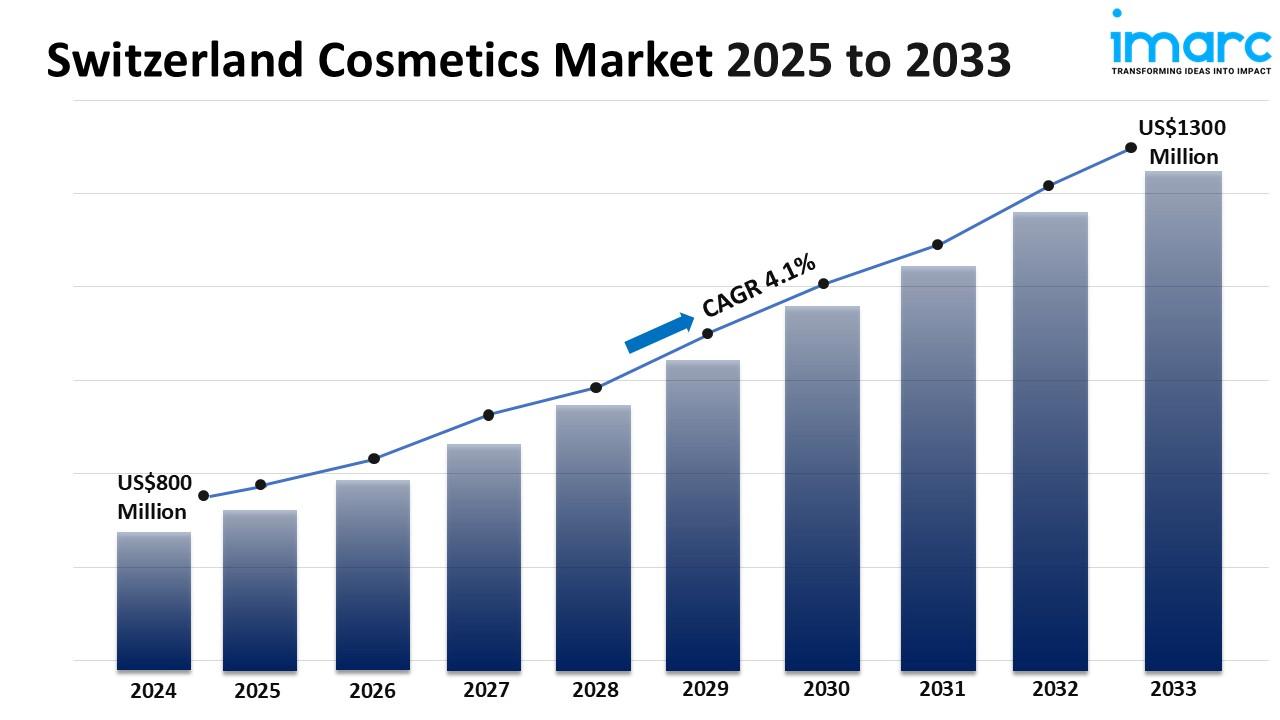 The Switzerland cosmetics market size was USD 800 Million in 2024.