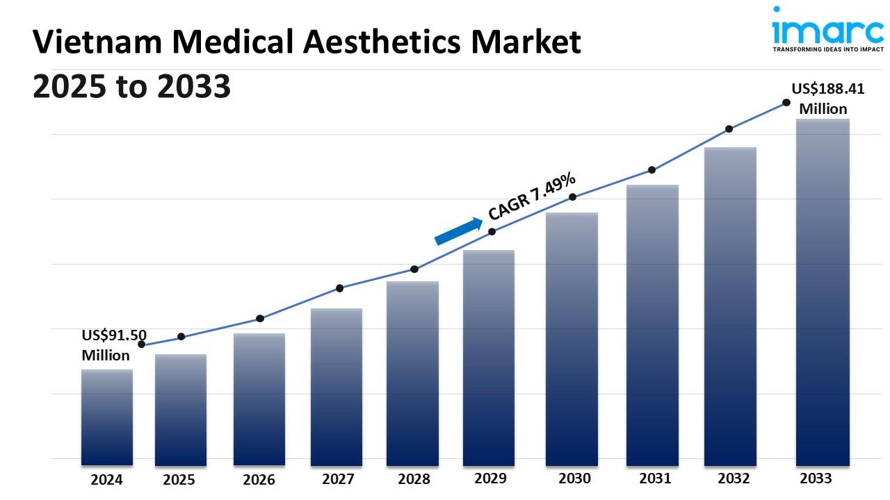 The Vietnam medical aesthetics market size was USD 91.50 Million in 2024.