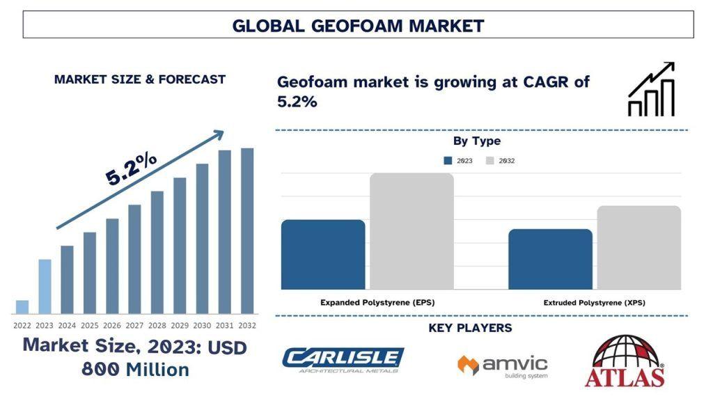According to a new report published by UnivDatos, the Geofoam Market was valued at approximately USD 800 Million in 2023 and is expected to grow at a robust CAGR of around 5.2% during the forecast period (2024-2032). The important factors that are likely to promote the growth of the geofoam coatings market include rising infrastructure activities, a shift towards sustainability, affordable, and suitability across various industries.