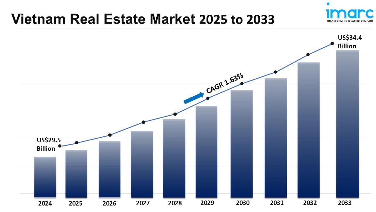 The Vietnam real estate market was valued at USD 30.0 Billion in 2025 and is projected to reach USD 34.8 Billion by 2034, growing at a CAGR of 1.64% during 2026-2034. Key growth drivers include rising urban migration, expanding residential projects, and supportive government policies. Notably, foreign direct investment surged 46% year-on-year in Q1 2025, highlighting strong investor confidence in this Southeast Asian investment hub.