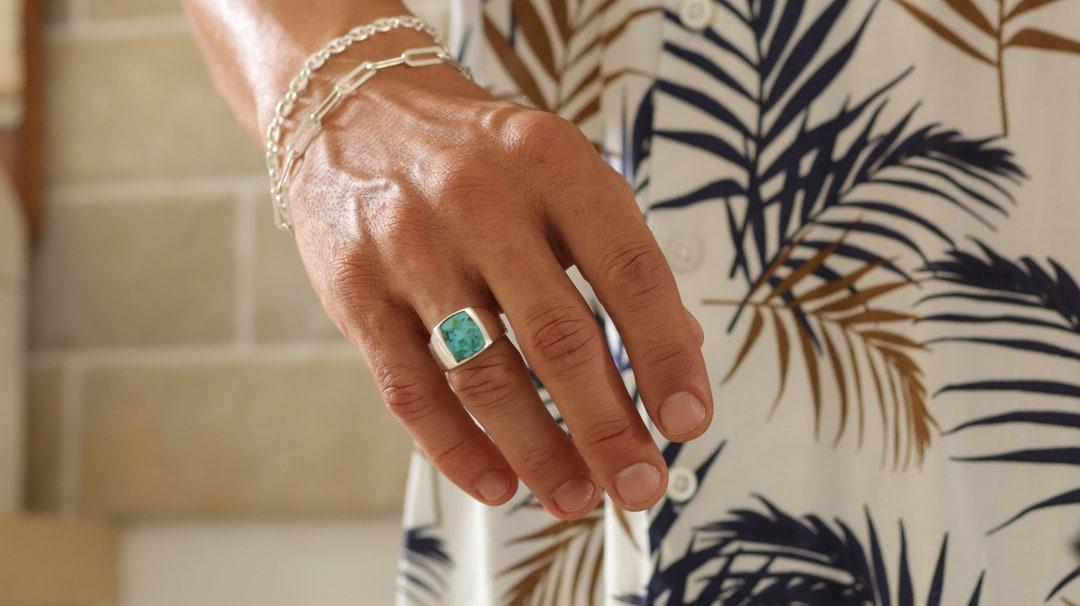 The bold color of turquoise reflects individuality and confidence. A man wearing a turquoise ring is not afraid to stand out.
