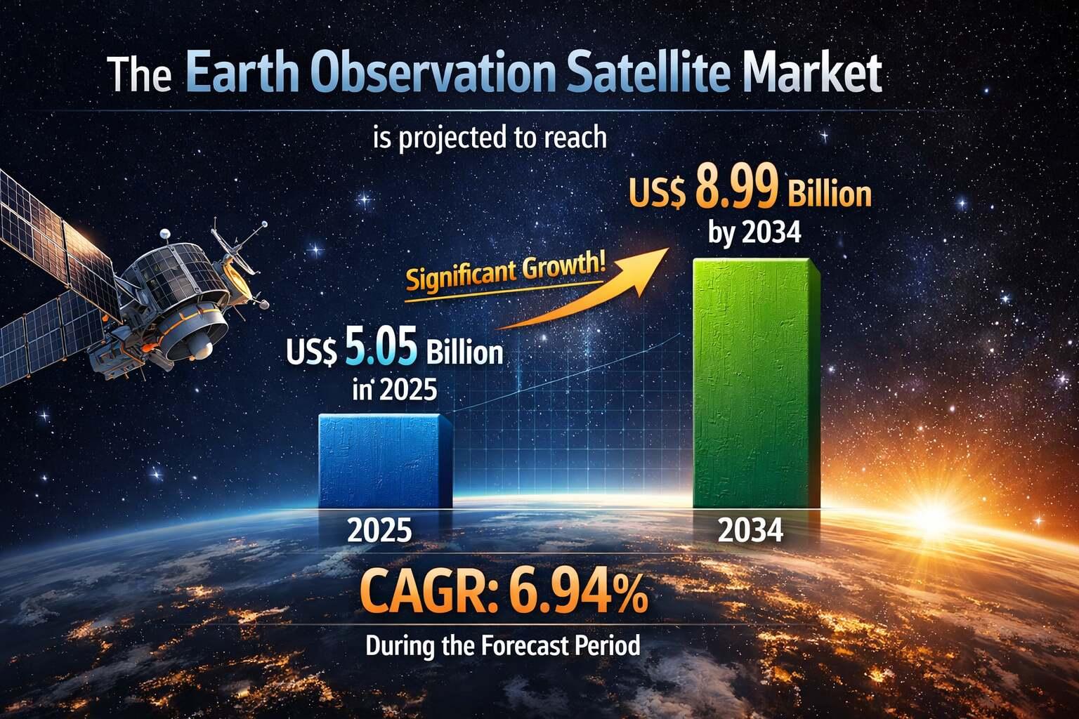The Earth Observation Satellite Industry is witnessing remarkable growth, driven by the increasing demand for satellite-based data across industries such as infrastructure monitoring, environmental observation, energy management, and disaster response. The market is projected to reach US$ 5.05 Billion in 2025 and expand to US$ 8.99 Billion by 2034, registering a compound annual growth rate of 6.94%. This expansion reflects the growing importance of satellites as critical tools for real-time data collection and analysis, while innovations from leading industry players are shaping the sector’s trajectory.