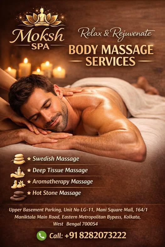 Relax, unwind, and restore your body at Moksh Spa, a premium wellness destination offering professional body massage services in a calm and luxurious environment. Conveniently located inside Mani Square Mall, Kolkata, Moksh Spa is the perfect place to escape daily stress and experience deep relaxation and rejuvenation.