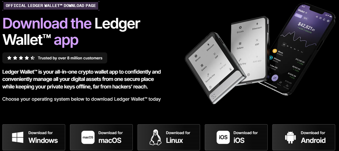 - Download Ledger Live: The Ledger.com/start page will guide you to download Ledger Live, the official companion application for managing your crypto. Download it only from the links provided on this official page or from Ledger's verified GitHub repository. Install it on your desktop or mobile device.