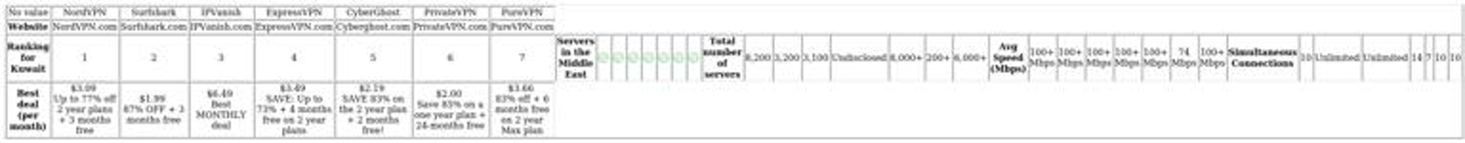 Our team personally evaluates every VPN—testing speed, security and usability—before recommending any service.\nBelow are the VPNs that performed best for users in Kuwait: Oct 2025Escaping Kuwait's strict online censorship requires a powerful tool, and NordVPN consistently proves itself as a top contender. Imagine browsing freely, accessing global streaming platforms and news sites previously blocked - this VPN makes it happen reliably. Its exceptional speed is a major asset, delivering averages near 200 Mbps. This translates to smooth video calls with family abroad, buffer-free HD streaming, and lag-free online gaming, even on Kuwait's networks.