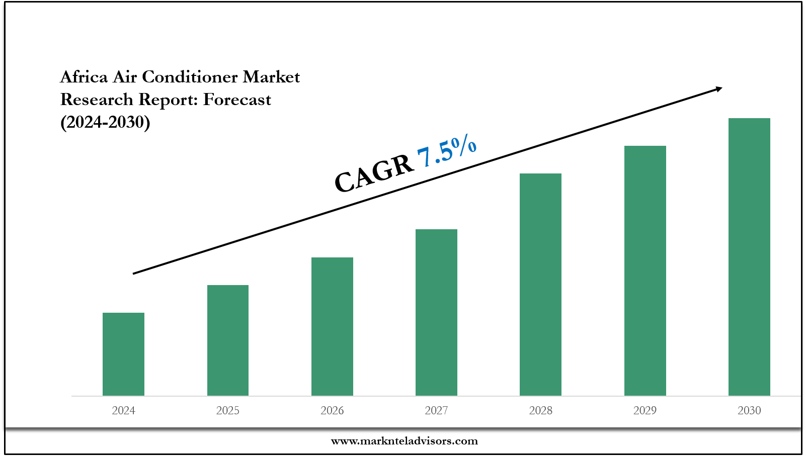 The Africa Air Conditioner Market is projected to grow at a CAGR of around 7.5% during the forecast period, i.e., 2024-30.