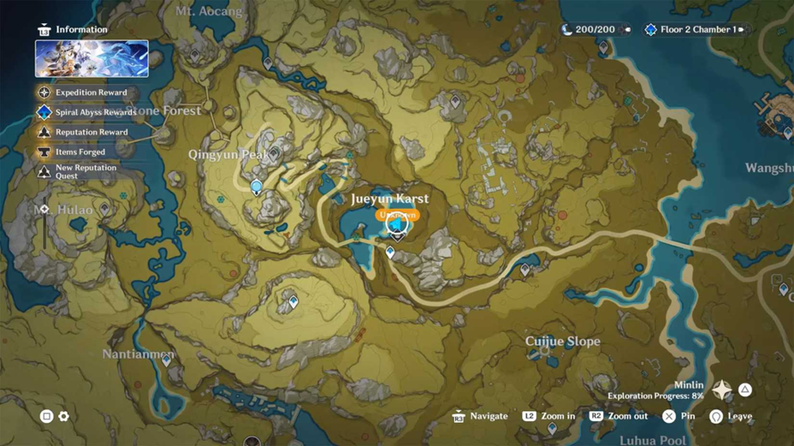 Jueyun Karst is a sizable body of water situated just north and slightly east of Tianqiu Valley. Its vastness can make solving the puzzle to drain the lake and access the mansion a bit time-consuming. However, there are two prominent pillars around the lake that, once interacted with, will unlock the hidden entrance to the mansion.