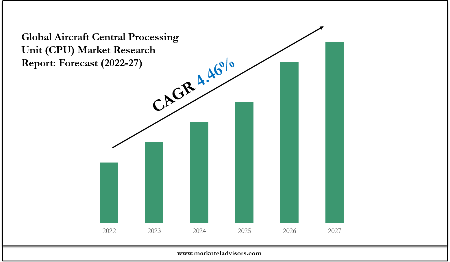The Global Aircraft Central Processing Unit (CPU) Market is projected to grow at a CAGR of around 4.46% during the forecast period, i.e., 2022-27.