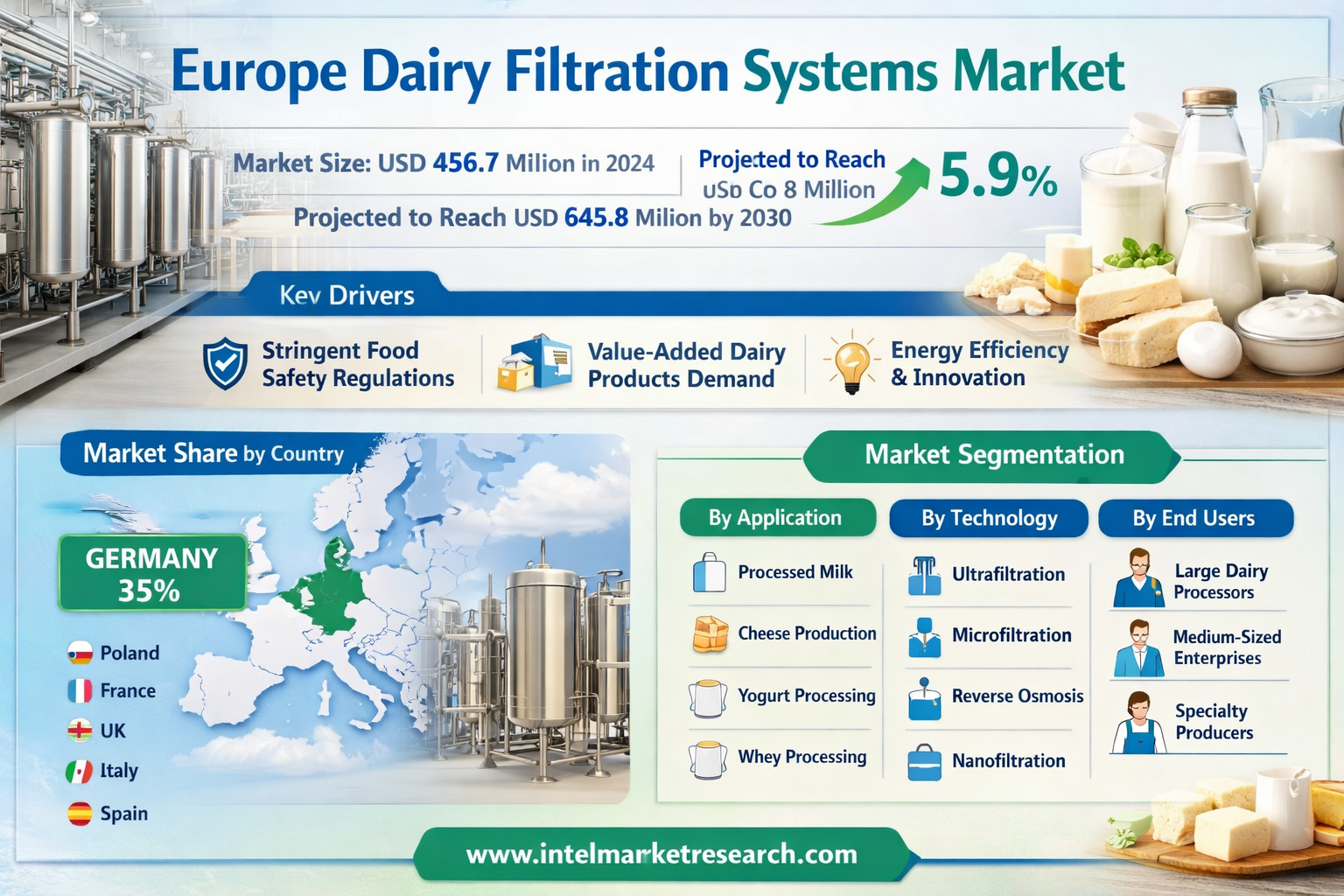 According to a new report from Intel Market Research, the Europe Dairy Filtration Systems market was valued at USD 456.7 million in 2024 and is projected to reach USD 645.8 million by 2030, growing at a CAGR of 5.9% during the forecast period (2025-2030). This growth is driven by stringent food safety regulations, rising demand for high-quality dairy products, and technological advancements improving energy efficiency by up to 38%.