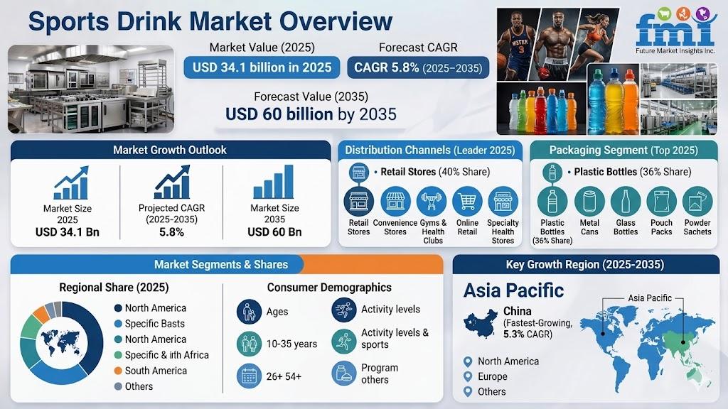 The global sports drink market is poised for steady expansion, projected to grow from USD 34.1 billion in 2025 to USD 60 billion by 2035, registering a CAGR of 5.8% during the forecast period. Growth is underpinned by rising health consciousness, increasing participation in sports and fitness activities, and heightened demand for convenient hydration and electrolyte replenishment solutions.