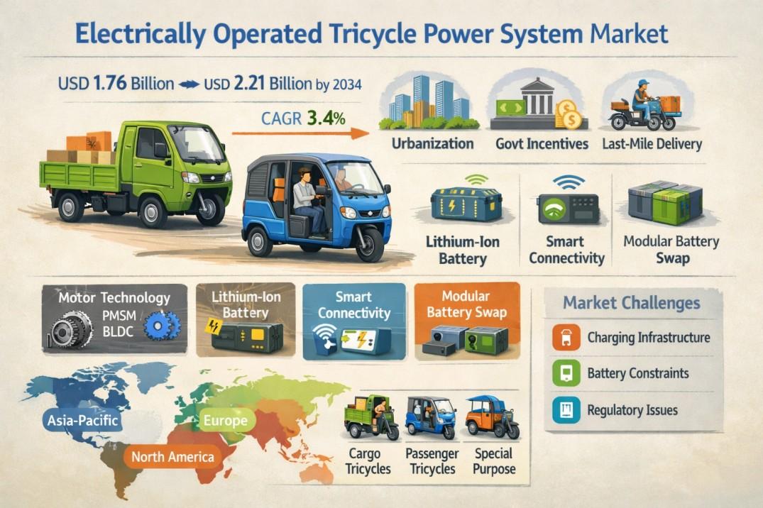 Electrically Operated Tricycle Power System Market Forecast 2025–2034: Expected to Grow at 3.4% CAGR to USD 2.21 Billion