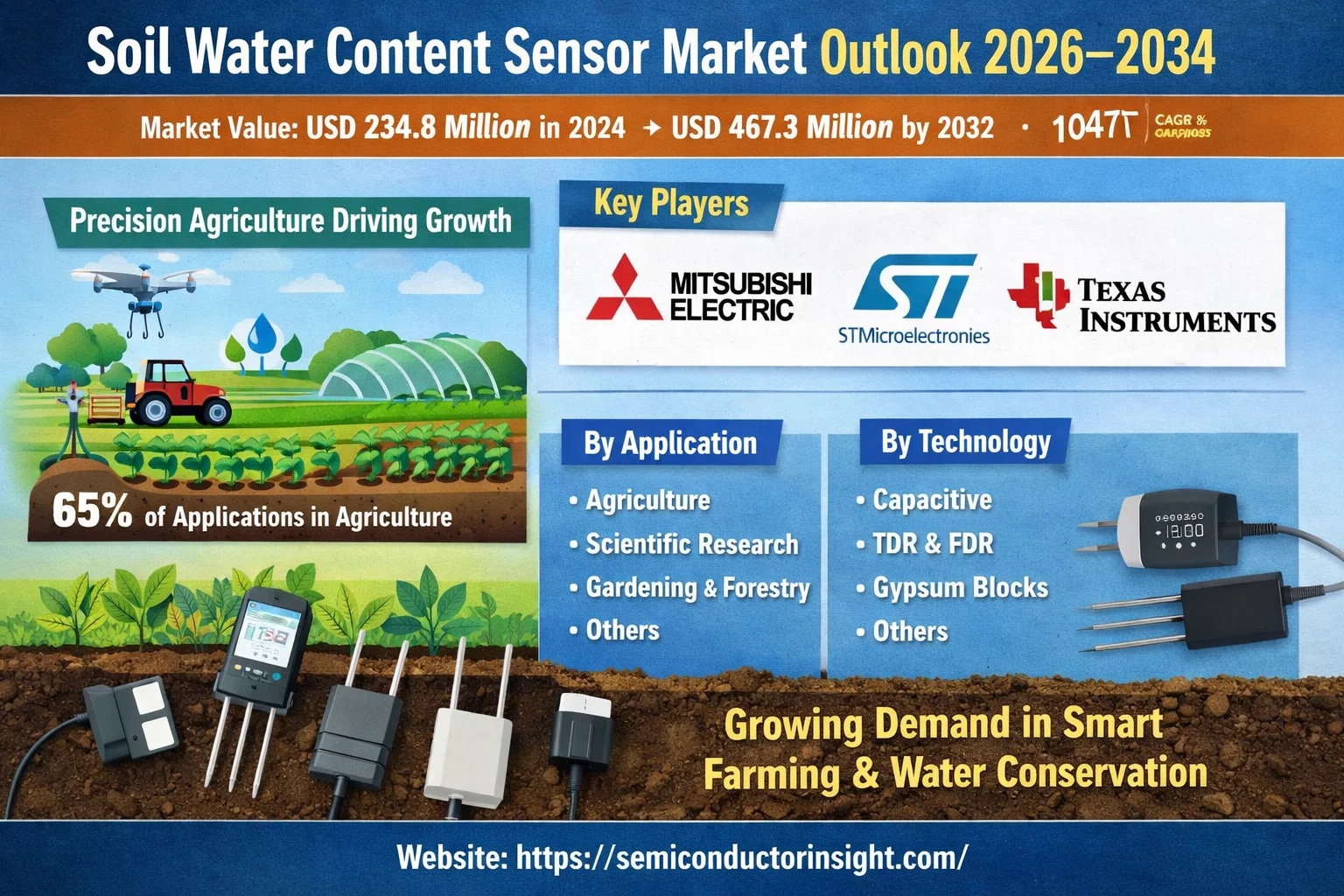 Soil Water Content Sensor Market: Key Players Including Mitsubishi Electric, STMicroelectronics, Texas Instruments and Outlook 2026–2034