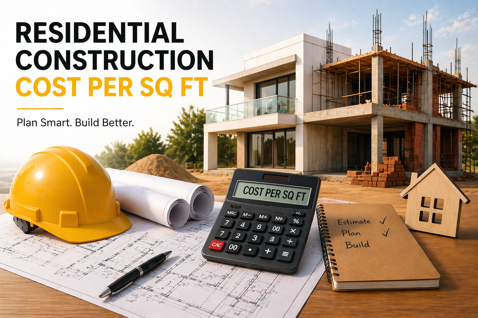 Constructing a house from scratch requires apt planning. Numerous factors are to be considered but your cost to build a new home stands out the most. To calculate the residential construction cost per sq ft  you must consider the cost of construction materials, labor, utility and how it can differ based on your location and type of construction materials. So, lets understand all these aspects carefully.