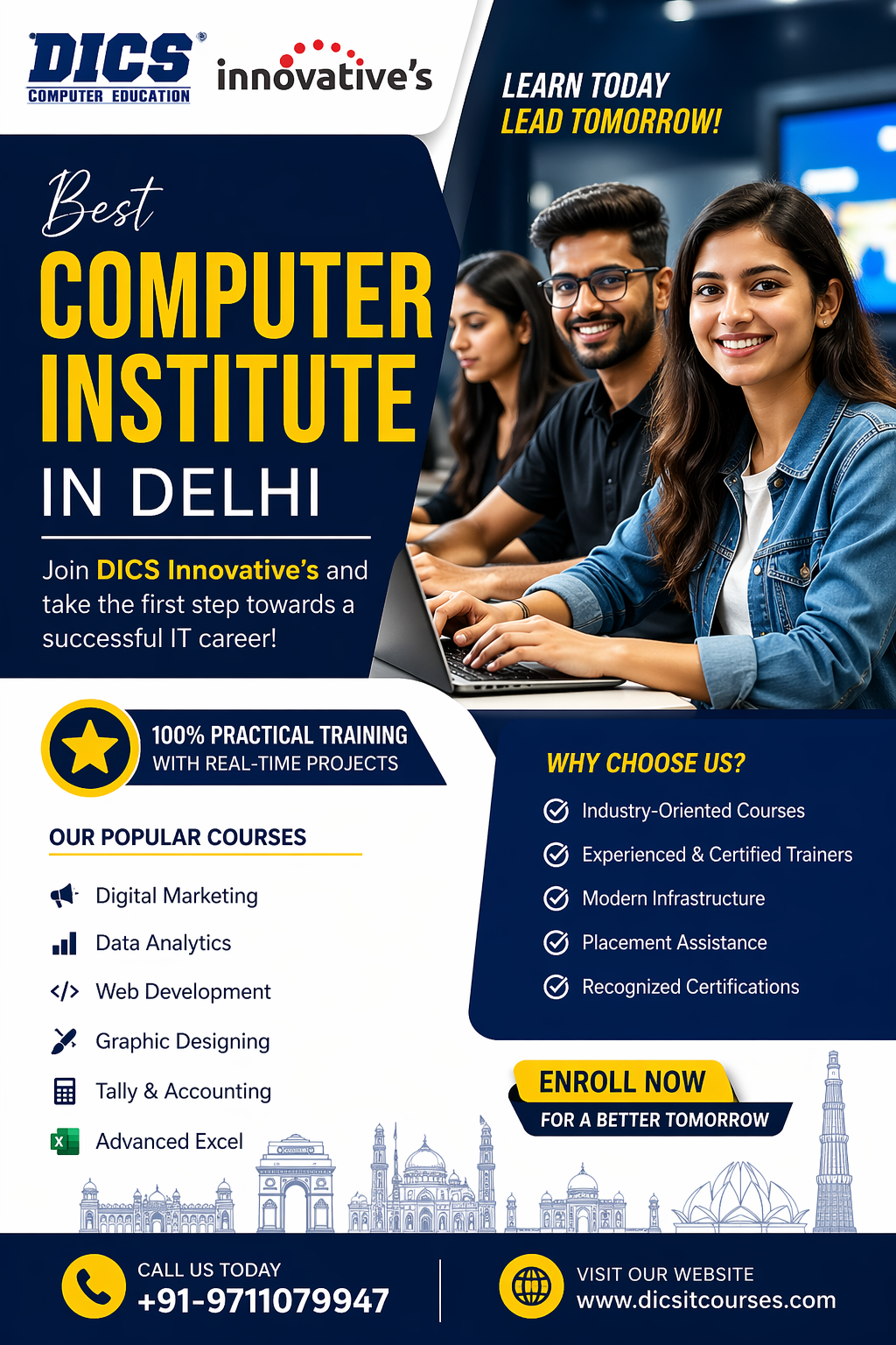 In today’s fast-growing digital era, having computer skills is not just an advantage—it’s a necessity. Whether you want a job, promotion, or freelance career, enrolling in the best computer institute in Delhi can open endless opportunities. Among the top institutes, DICS Computer Education stands out for its quality training, practical approach, and student success rate.