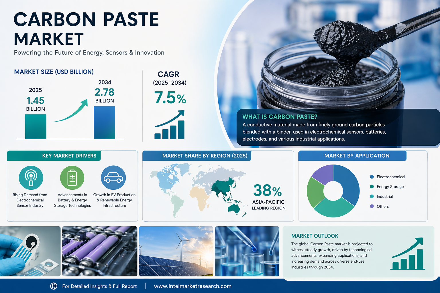 According to a new report from Intel Market Research, the global Carbon Paste market was valued at USD 1.45 billion in 2025 and is projected to reach USD 2.78 billion by 2034, growing at a robust CAGR of 7.5% during the forecast period (2025–2034). This growth is propelled by surging demand from electrochemical sensor manufacturing, advancements in battery and energy storage technologies, rising investments in renewable energy infrastructure and electric vehicle production, and the Asia-Pacific region's dominance with a 38% market share fueled by China's battery boom and India's electronics expansion.