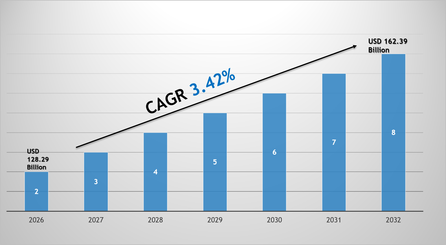 The Global Geospatial Defense Applications Market size is valued at around USD 128.29 billion in 2025 and is projected to reach USD 162.39 billion by 2032. Along with this, the market is estimated to grow at a CAGR of around 3.42% during the forecast period, i.e., 2026-32.