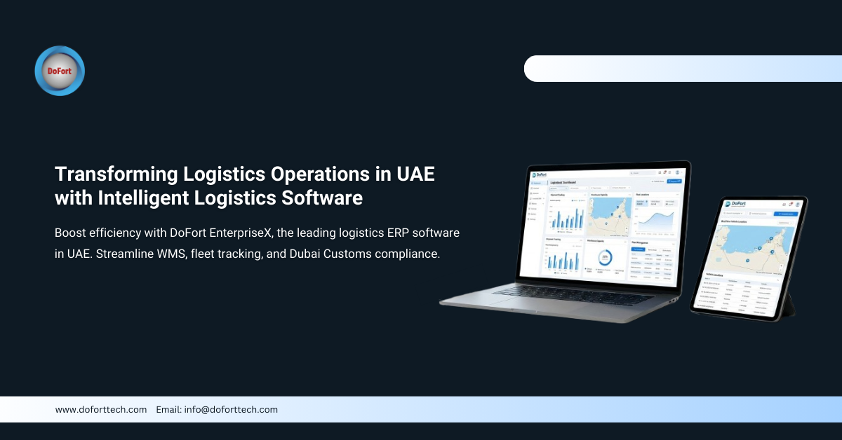 Boost efficiency with DoFort EnterpriseX, the leading logistics ERP software in UAE. Streamline WMS, fleet tracking, and Dubai Customs compliance.